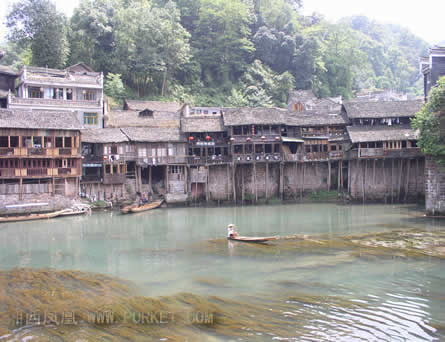 | 凤凰是沈从文的故乡。沈从文曾经告诉过我们这样去寻找他的故乡:“若从一百年前某种较旧的地图上去寻找当可在黔北、川东、湘西一处极偏僻的角隅上,发现一个名为‘镇竿’的小点。那里同别的小点一样,事实上应当有一个城市,在那城市中,安顿下三五千人口......” 镇竿是凤凰原来的名字。东北有个千户所(清朝的军事编制)叫镇溪。正北方还有一个竿子坪,镇竿的名字就是这两个地方各取一字来命名的;镇竿紧扼西南苗疆的咽喉,历史上是个充满刀光剑影的地方。这里由于民族矛盾而造成的冲突不断,其中最有名的是乾嘉苗人起义,这被看成是使清朝由盛转衰的一次起义。所以,为了安顿西南边疆。镇压少数民族起义。统治者就在这里构建军事设施。使镇竿逐渐成为了西南的一个军事重镇:明嘉靖三十三年。负责弹压湘西苗疆的镇竿参将奉命移驻今天的凤凰县域:到清顶治三年。军事编制升为副将:康熙三十九年。正式改称“镇竿镇”:后来又把周围地区的几个军事机构移驻镇竿。这样镇竿就哎了湘西的军事、政治、文化中心。 而“凤凰”这一个名字始得于民国二年。这个名字的基础是一个军营。这座军营坐落在唐朝渭阳县(今黄丝桥古城)旁边的凤凰山上。军营因山而得名“凤凰营”:并且随着军队的移驻。把这个名字带到了今天的凤凰:从此。这块土地就有了这样一个美丽、吉祥的名字。 |