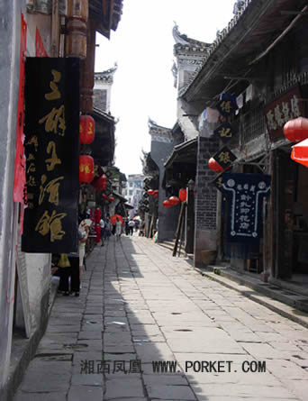 从吉首到凤凰走的是209国道。大约52公里,驶过凤凰桥。南华门便出现在眼前,这是凤凰的门户。在这块大牌坊之后就是美丽的凤凰古城了,先别急着踏人这个门,先欣赏一下门外的沱江,调整一下心情:凤凰是座悠闲的古城,在淡雅中显出自然与人性之美。著名的作家路易.艾黎品称赞这里是世界—亡最美丽的两个小镇之一.但是如果你抱着“到此一游”的浮躁心态,那么你就不能感受到凤凰的美,古人云:“风花雪月本闲,而劳者自冗”,所以用劳者的心态是体会不到凤凰的美丽的:凤凰人说起旅游,有一个独特的词:"走玩”。顾名思义就是走走玩玩,且走且玩;与旅游不同的是。走玩是随意洒脱.是涉目成趣,不是非要对着哪个景点冲过去。然后照张相证明自己来过便匆忙离开:凤凰就是个只适宜走玩的小域:听以。来到南华门前.请把城市钟摆似的节奏留在门口。放下浮躁的心情.慢慢地踱入凤凰.随着凤凰的节奏去游览这个古域:不要用你的匆忙去破坏这个小镇的节奏。 凤凰以县广场为界。分为内城、外城。 外城是城市扩张的结果:可以跑车.街上有三轮摩托.但实际上外域也没多大.步行世可。 内城才是真正的古城。清一色的石板路。走不了车。只能步行:景点都集中在内域.游人可以按照朝阳宫--熊希龄故居---北门城楼---沱江---沈从文墓---准提庵--虹桥’沱江北岸---东门城楼--民族一条街的线路来游览。少走路又把凤凰的景点都游到,倘若只是匆匆而过。只要半天便可走完这条线:如果不想如此匆忙.游人可以先找个地方住下。然后随意地在内城走走。不用限定目标。限定时间.这样才能从中感受到这古城的乐趣。 |