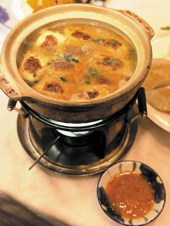 闽南客家人历来善于烹饪,且技艺高超,至今他们仍利用自己生产的土特产品,制作出几十种具有客家风味的传统名菜。这些名菜一般在丰盛的筵席上才有,其风味独特,四季适用,故十分受广大食客的青睐。下面简要介绍四种具有地方风味的客家传统名菜,以飨读者。 1-白露鸡 选用肥猪鬃脑肉和大鸡腿肉,用刀切碎捣烂,再用适量的鸡蛋青和精面粉、食盐调和后,铺在盆内,放到锅里蒸熟,如认为油腻过甚,可将浮在面上有余的油质,移作他用,再蒸片刻,取起食之,质松滑、味香甜,入口消溶,津津有味。此菜四季适用,非普通的筵席上所有。 2-布袋鸭 选用肥鸭一只,宰后,先用冷水浸片刻,再用滚水脱毛,然后用清水洗净,从颈侧处剪开二寸许的大口,把内脏取出,洗净腹内,用锋利小刀从两翅膀处把鸭骨剔除,仍保持鸭体完整,再把在剔出鸭骨上削下的鸭肉,和切碎的金钩、对虾、尤鱼、瘦猪肉、冬笋(或笋干)、香菇及莲子,加少许食盐混合起来,从颈侧开口处纳入腹内,即用线将口缝紧,放在长盘内,置蒸笼中蒸到熟透,取出食时,剪开线,用筷子夹开,连肉带馅一起吃,真令人说不出其中的妙味。也有用叉烤的,在鸭腹内加灌点肉汤,名为灌汤烧鸭,味比蒸的更香。此菜四季适用,在丰盛的筵席上才有。 3-全香菇 选用干的厚菇或花菇每盆150克,净茶油50克,先把菇脚剪掉,洗净后,用清水浸泡发胖,倒去清水,将菇面向下贴在扣碗内,茶油从上淋下,放在蒸笼内蒸好,两手即将扣碗倒在瓷盆内,加少许麻油,清香可口,别有风味。此菜四季适用,为荤素筵席上的佳品。 4-伊府面 选用精面粉500克,鲜鸡蛋4个去壳,将蛋青蛋黄划成蛋汤,倒在面粉上,用手工打成面条后,用清水煮沸,取起晾干,再把面干投入油锅炸到适当程度,舀去余油,加上适量的清水煮到半熟时铲起,另将已配食盐炒好的瘦猪肉丝,嫩笋丝、香菇丝、尤鱼丝等佐料和面放在锅里加肉汤同煮,待煮熟时,铲到碗内,面上加点葱花,其味胜过一般煮面好几倍。这是闽西客家祖地宁化县乡贤伊秉绶生前任惠州、扬州知府时,常以此宴客,因其烹调与众不同,故被称为“伊府面”。此菜四季适用,但亦非丰盛席上所常有。盖恐做得不精,有损其名。客家传统名菜,驰名遐迩,众口皆碑,显示出客家人的匠心独具。这些具有客家风味的传统名菜,往往使得久居他乡的客属游子们难以忘怀,引起对故乡的无限情思。 |